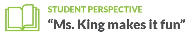 Her efforts have paid off not only in students’ well-being, but also academically. Children who feel that their teacher knows and cares about them are more likely to participate in discussions, she says—and studies have shown that talking with others about a text is one of the main ways students develop comprehension strategies. Because they have a sense of belonging, King doesn’t need to spend much time on classroom management, leaving more time for instruction. She says, “They’re going to put everything into what they do because of the relationship that they have with me and how they feel.”