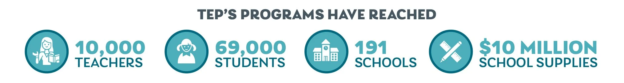 Students need basic school supplies in order to learn. Our region’s prosperity is tied to its residents’ education and future success. By empowering students and educators, TEP contributes to nurturing a well-educated local talent pool capable of contributing to the workforce and the community.